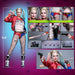 Esta figura de acción coleccionable presenta una cabeza esculpida con precisión cinematográfica, con ojos giratorios separados y un cabello esculpido con su icónico peinado de coleta rubia, azul y rosa. El cuerpo de nuevo desarrollo, hecho de silicona, presenta un diseño sin costuras y una armadura metálica especializada en su interior que permite una amplia gama de articulaciones. La forma de su cuerpo realza maravillosamente las curvas femeninas del personaje y está intrincadamente detallada con tatuajes. El traje de Harley Quinn es una réplica magistral, con su camiseta finamente confeccionada, chaqueta de béisbol, correa de pistolera, pantalones cortos y medias de rejilla. Sus tacones altos, cinturón, gargantilla y brazaletes están recreados con meticuloso detalle, capturando el aspecto icónico del personaje de la película. Su armamento incluye un bate de béisbol, un mazo y un revólver con dos cargadores rápidos. El set también incluye un bolso plateado y una base de figura con detalles de fragmentos de vidrio, lo que permite a los fanáticos recrear la escena donde Harley rompe el escaparate de una tienda para robar un bolso.