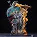 El busto artístico de Boba Fett mide más de 50 cm de alto y se centra en una fiel recreación del icónico casco del cazarrecompensas. Alrededor del casco se encuentran escenas bellamente esculpidas que representan momentos importantes de la historia de este personaje favorito de los fans, incluyendo la tragedia de su infancia y su crucial captura del rebelde Han Solo .