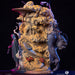 El busto también incluye una recreación de Ciudad Nube, la metrópolis flotante que sirve como escenario de tantos momentos queridos de la historia, envuelta en nubes naranjas que hacen la transición a una visión etérea de la cresta mandaloriana que parece formarse en la atmósfera.