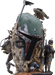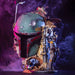 El bust artístico de Boba Fett mide más de 50 cm de alto y se centra en una fiel recreación del icónico casco del cazarrecompensas. Alrededor del casco se encuentran escenas bellamente esculpidas que representan momentos importantes de la historia de este personaje favorito de los fans, incluyendo la tragedia de su infancia y su crucial captura del rebelde Han Solo .